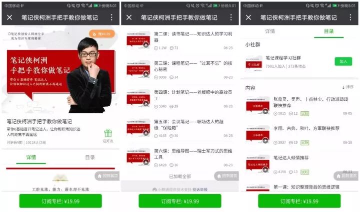以公众号为最初发展渠道的情况下,积累粉丝和用户,得到更多用户的认同。这是大多数内容创作自媒体发展的必经一个过程,柯洲把其定位为笔记侠的“一级发展”阶段。